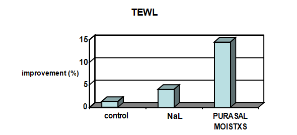 在本試驗中顯示PURASAL® MOISTXS 也顯著降低了經(jīng)表皮的水分流失