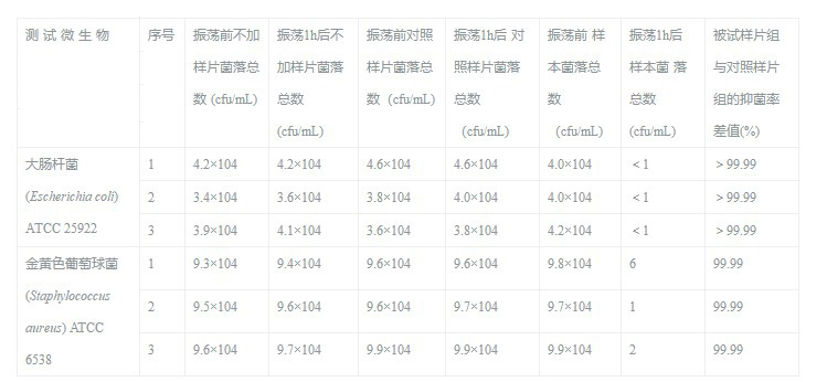 振蕩1h后不加樣片菌落總數(shù) (cfu/mL) |