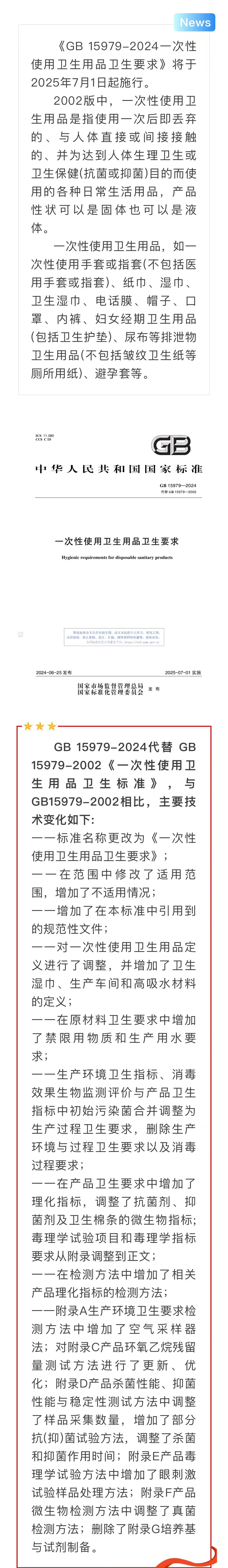 GB 15979-2024《一次性使用衛(wèi)生用品衛(wèi)生要求》新修訂內(nèi)容解讀